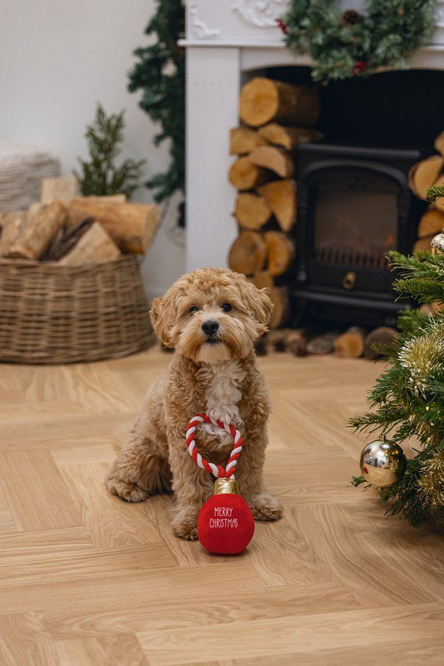 Pallina natalizia con corda, il giocattolo ideale per far divertire il tuo amico a 4zampe durante e feste!